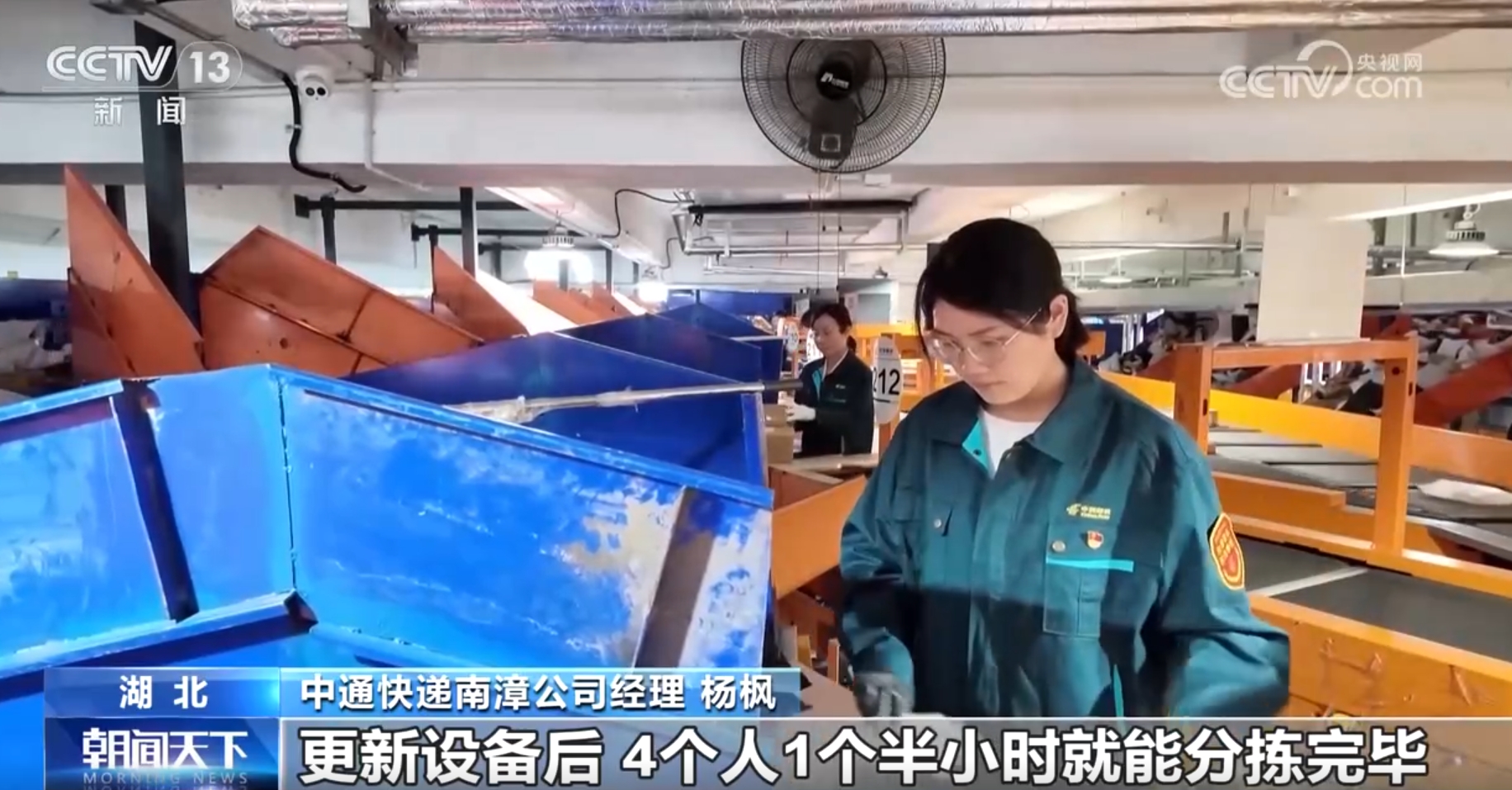 中通快递南漳公司经理杨枫称:“在投入智能分拣设备前,20000件快递我们需要25个人分拣3个小时。更新设备后,4个人1个半小时就能分拣完毕。”