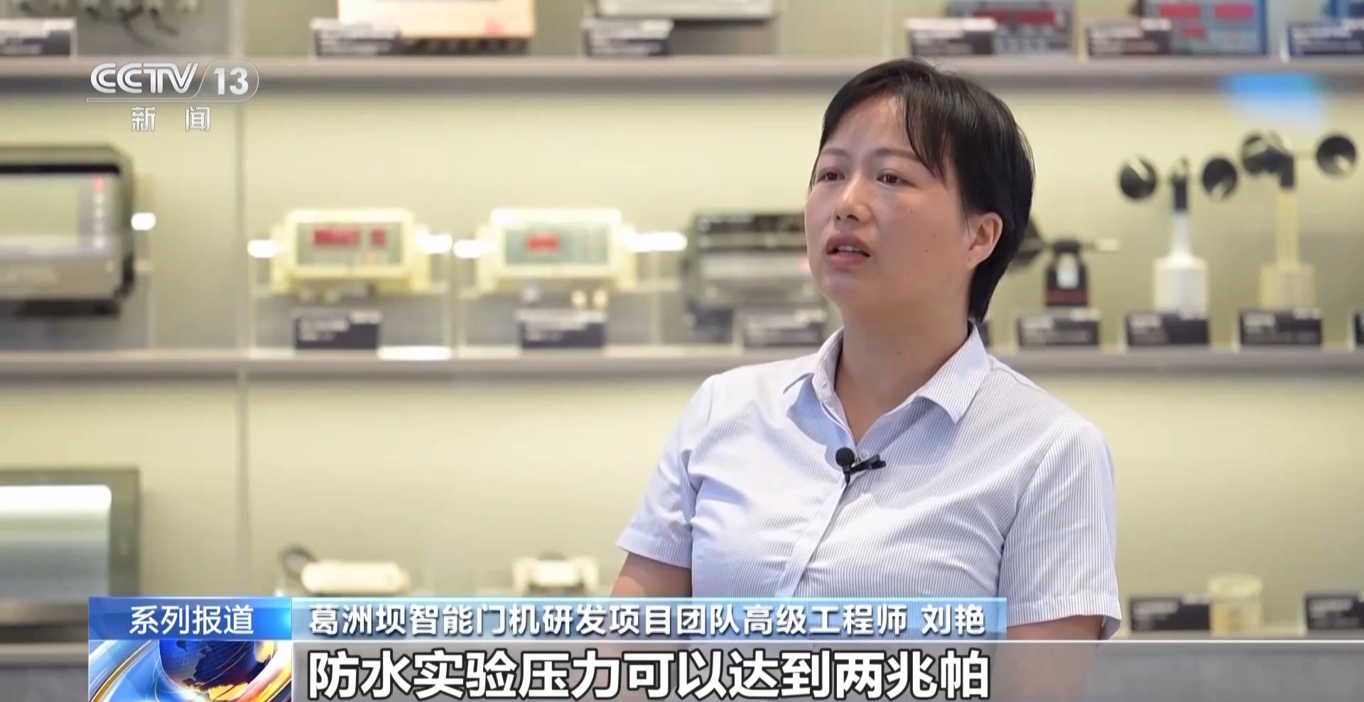 葛洲坝智能门机研发项目团队高级工程师 刘艳:防水实验压力可以达到两兆帕,基本上相当于在水下200米的深度,那么能够在接受200米的深度工作,它在10米的深度工作是绝对没有问题的。