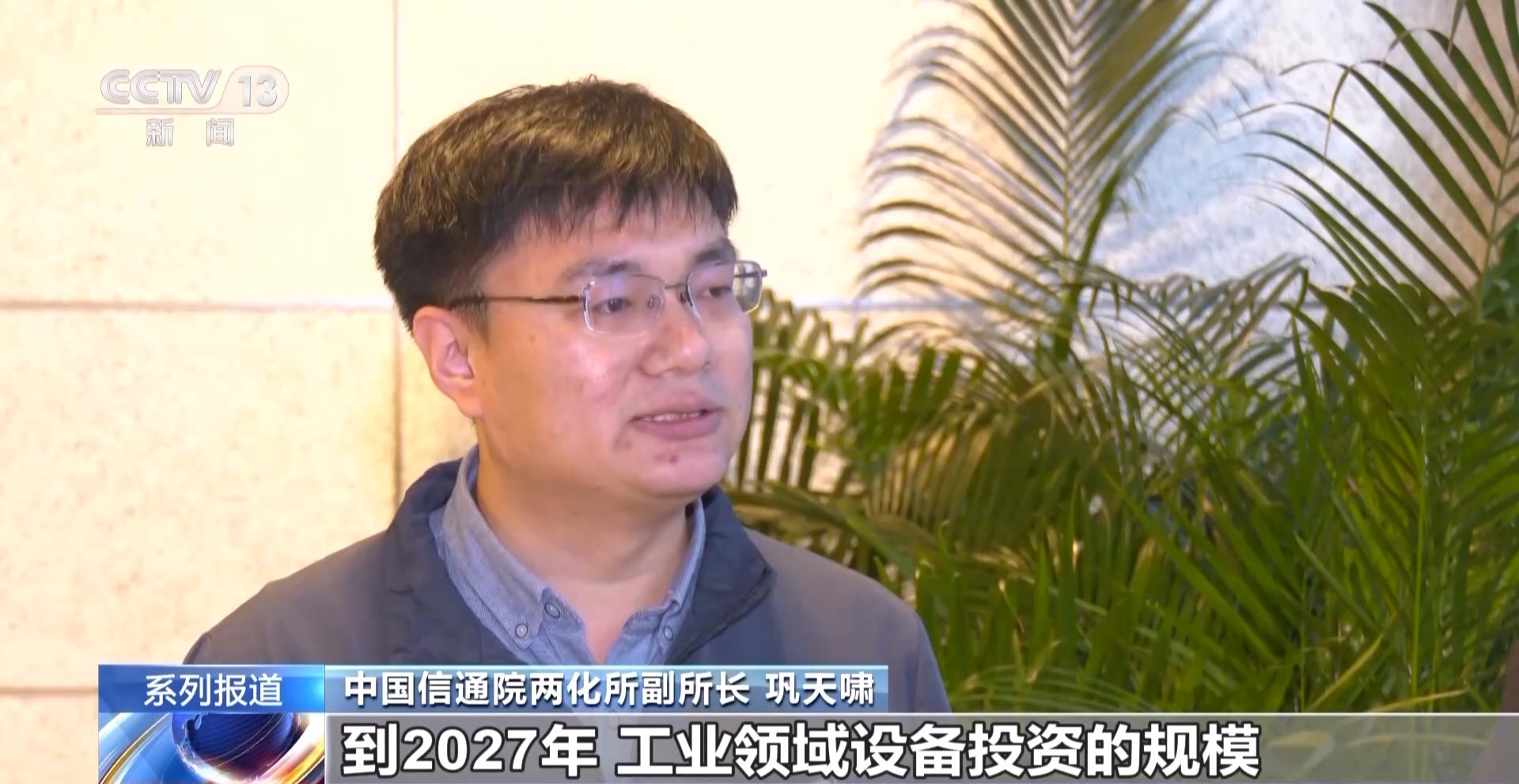 中国信通院两化所副所长 巩天啸:2023年全国工业领域设备投资的规模达到了4.4万亿元,占全社会设备投资的比重也超过了70%。推动工业领域设备更新实施方案提出,到2027年,工业领域设备投资的规模要较2023年增长25%以上。根据这一目标,未来三年工业领域设备更新投资将形成超过10万亿的需求空间。(总台央视记者 王琰 朱江 张伟 郝毅杰 宜昌台)