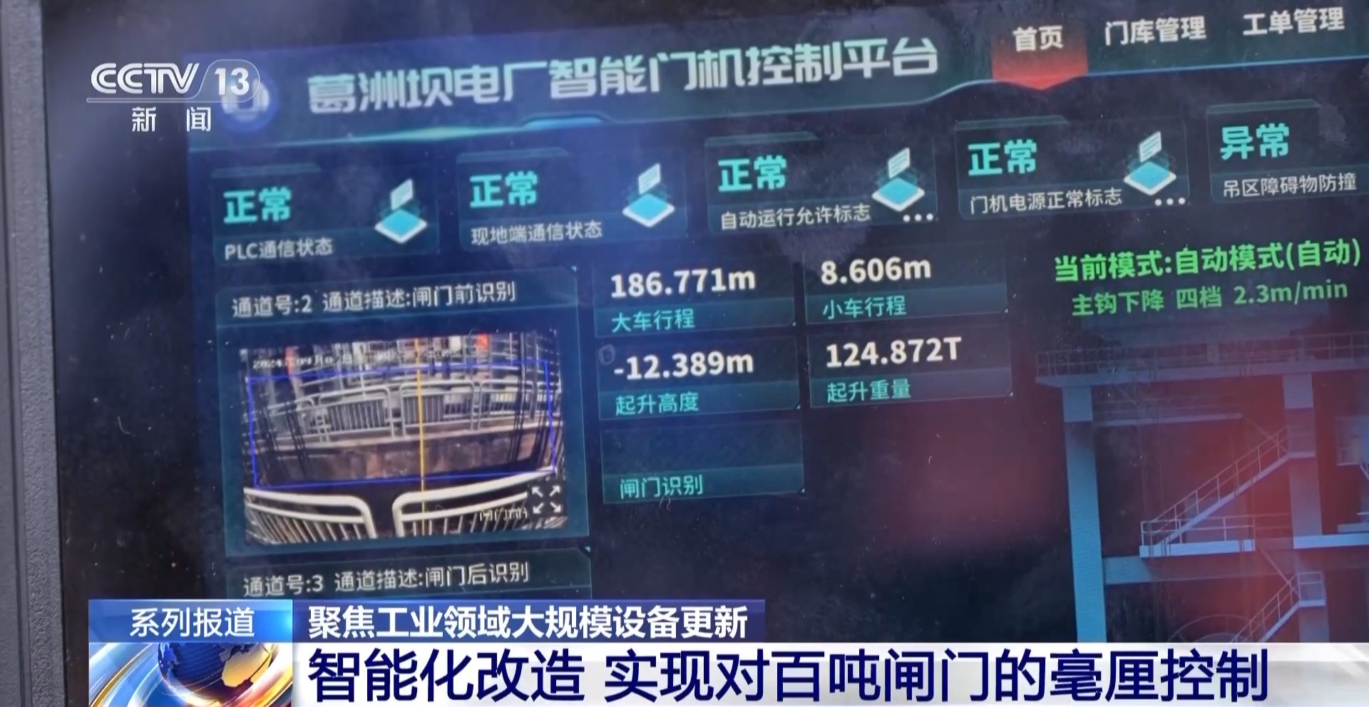 记者在葛洲坝二江电站机组进水口坝面看到,智能化改造的门机正在工作着,以往烦琐的人工操作,眼下升级为全自动的智能模式。