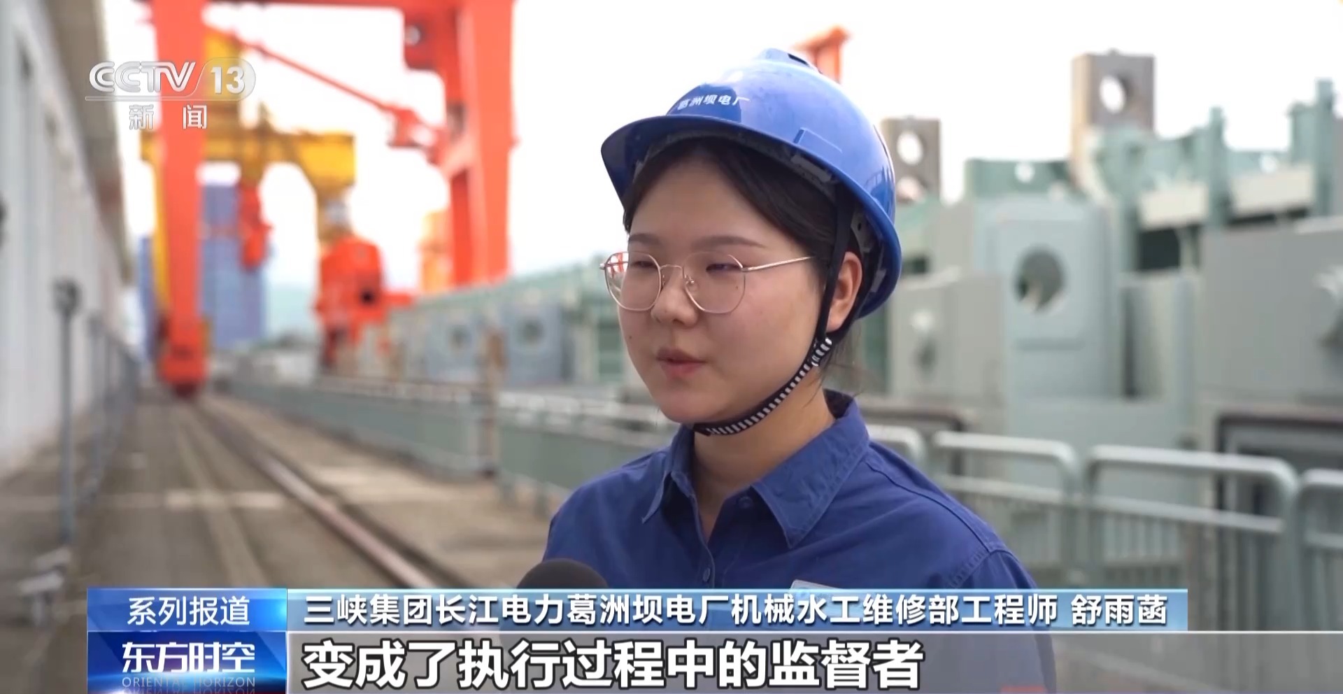 三峡集团长江电力葛洲坝电厂机械水工维修部工程师 舒雨菡:从传统门机驾驶员,变成了执行过程中的监督者,这样可以让我从繁重的门机操作中解脱出来,结合我自己的专业能力将更多的工作重心放在创新研发上,用我们年轻人的力量来助力大国重器实现更多智慧转型。