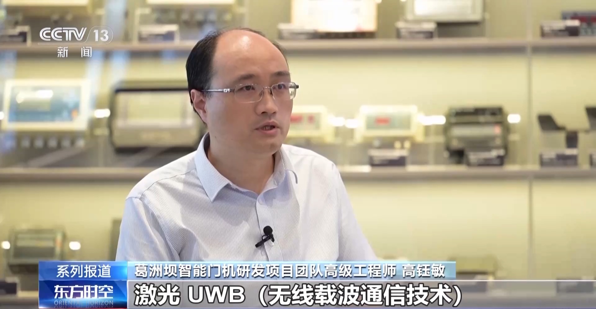 葛洲坝智能门机研发项目团队高级工程师 高钰敏:融合了北斗定位、激光、UWB(无线载波通信技术),还包括直线编码、标签,也包括AI识别,应该这么多方案都用上了。相当于说我还是有套算法,去计算什么时候全速,什么时候慢速,什么时候要利用惯性自动停下来,停下来刚好是那个一毫米以内。