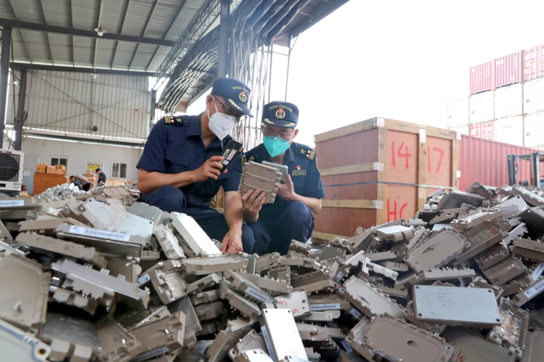 2023年6月,广州海关所属佛山海关关员在对1票申报为“PE塑料粒”的进口货物进行查验时,发现集装箱内实际装载货物为旧电脑电源、旧硬盘、旧平板电脑等废旧电子设备。经送技术机构鉴别,确定该批货物属于我国禁止进口的洋垃圾,总重104.41吨。