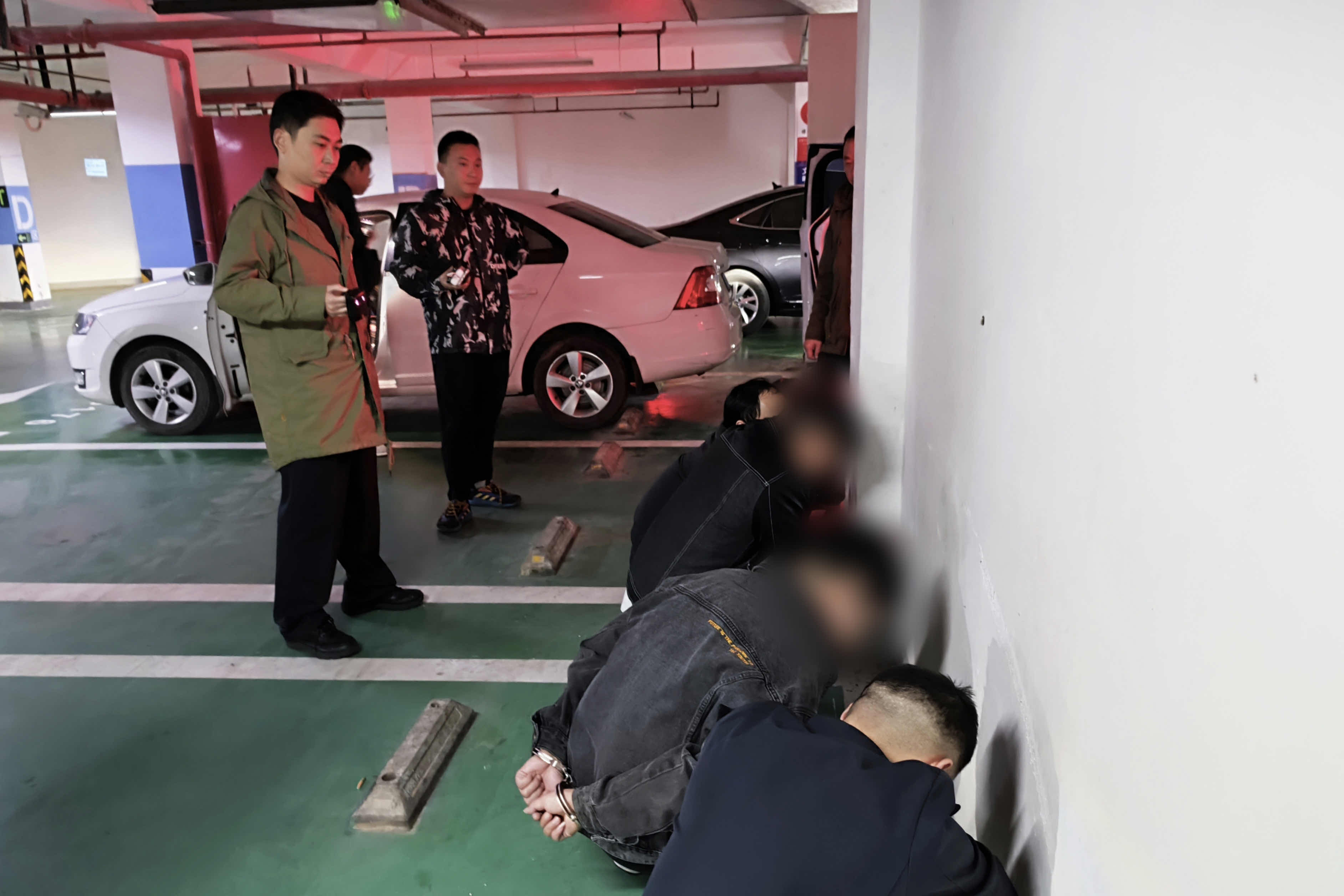 上海警方在某小区地下车库将5名犯罪嫌疑人抓获。上海浦东警方 提供