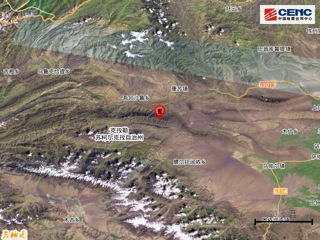 速报参数:据中国地震台网正式测定,11月20日1时8分在新疆克孜勒苏州乌恰县发生3.6级地震,震源深度10公里,震中位于北纬39.55度,东经74.92度。