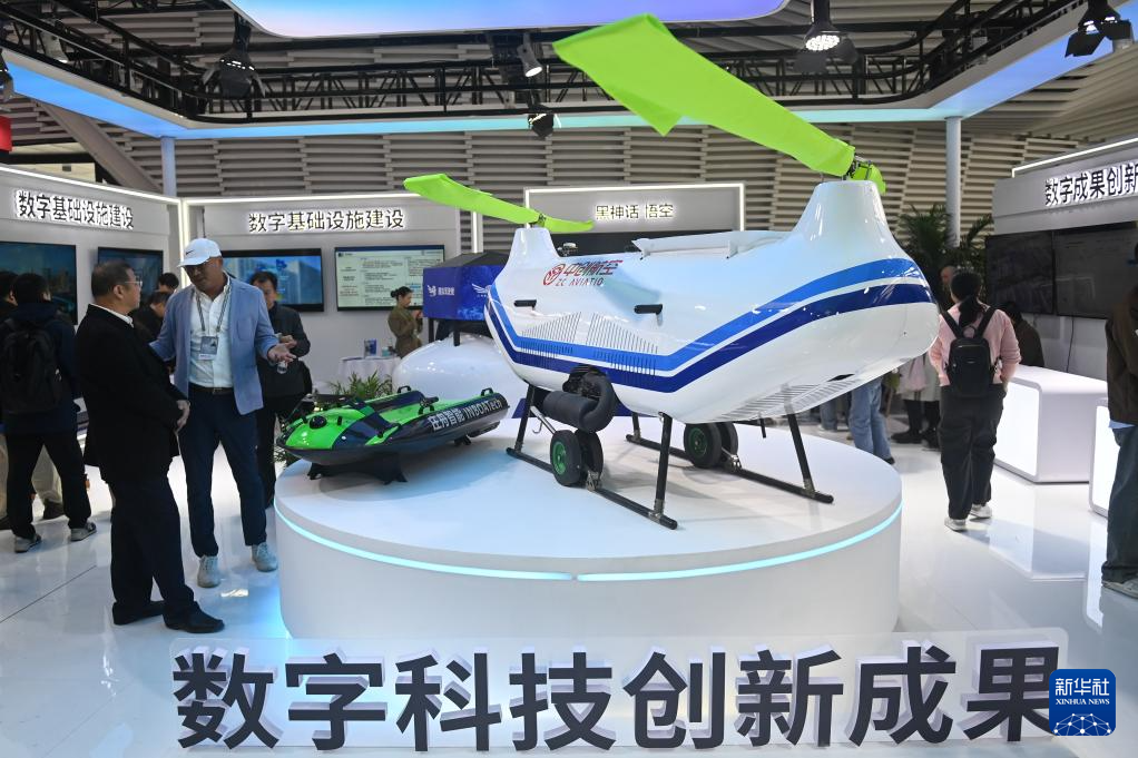 11月19日,在2024年世界互联网大会“互联网之光”博览会上,观众观摩一架无人驾驶电动航空器。