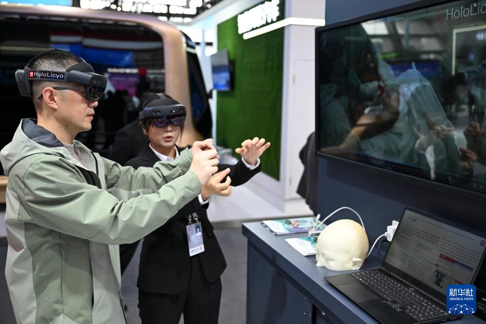 11月19日,在2024年世界互联网大会“互联网之光”博览会上,参观者体验一款全息智能医学影像系统做手术的过程。