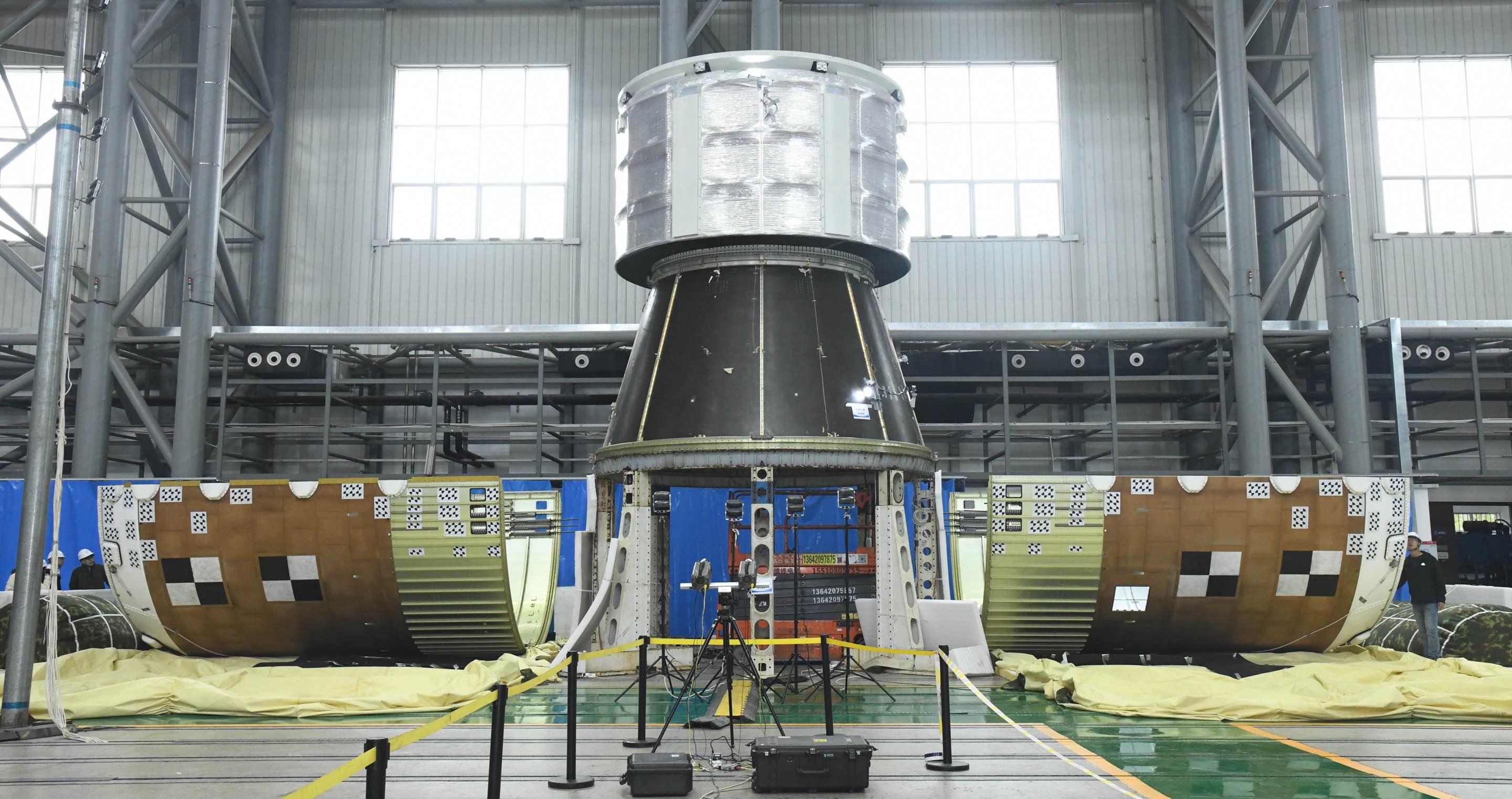整流罩作为运载火箭的重要组成部分,可以为航天器、飞船等提供有效的保护,以免其承受高速气流带来的各种不利影响。本次试验的整流罩高度和直径均为5米,是全新研制的整流罩构型,同时火箭首次采用超静定连接方式,与传统的整流罩相比增加了一个分离面,解锁环节更多,分离方案复杂,可靠性要求高。研制队伍在试验前,还通过预试验,初步测试了相关数据,确保整个分离试验更可靠。