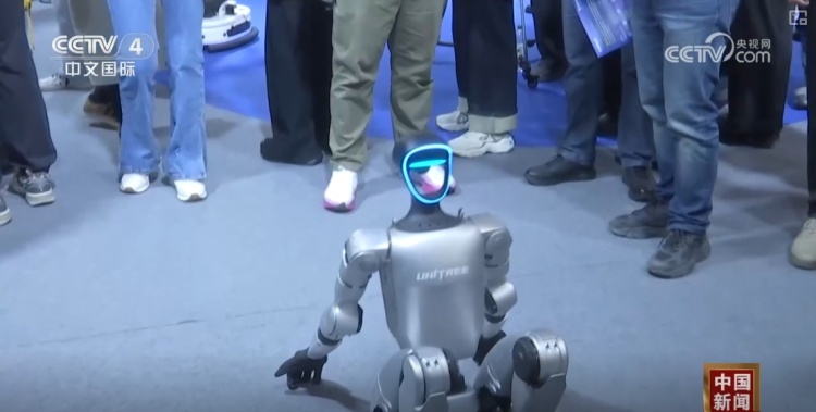 在人形机器人展区,各种功能的交互机器人大显神通。这款人形机器人配备了3D激光雷达和深度相机,可以感知周围环境并执行多种任务。机器狗正在表演倒立行走、翻身起立等炫酷技能,具备负载和在极端扰动下快速恢复的能力。