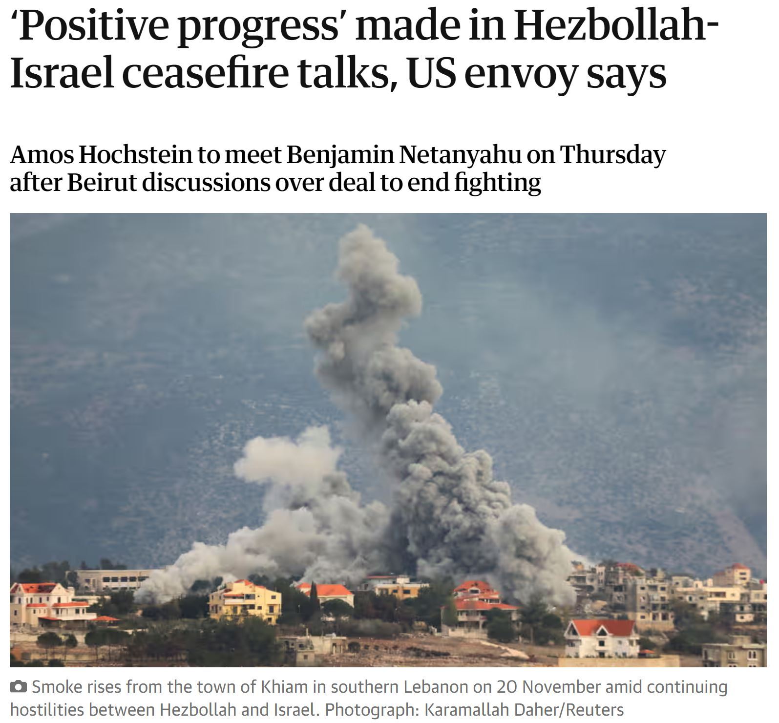 在到访耶路撒冷之前,霍克斯坦在访问黎巴嫩期间曾表示,黎以双方的分歧已经“显著缩小”,达成停火协议“触手可及”。