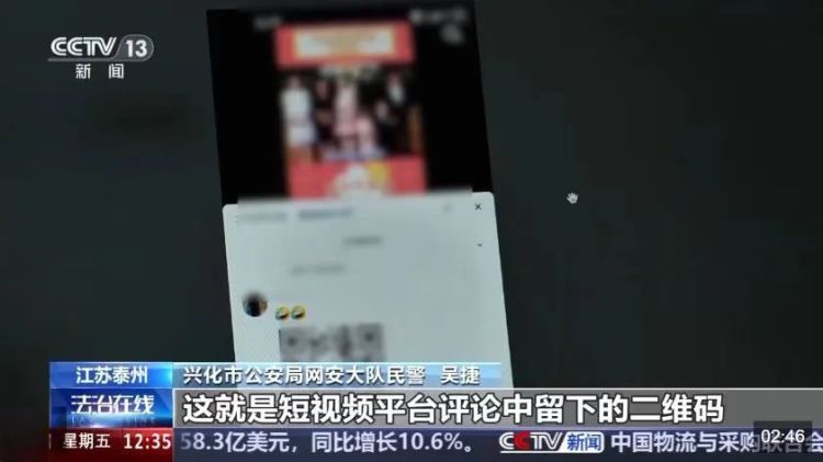 兴化市公安局网安大队民警 吴捷: 针对不同的平台,它就主要是针对短视频平台和聊天软件,利用一些社会热点,或者他手上能够吸引人的一些花边消息,有图片,有视频,在观看的过程中或者是点击的过程中,它会弹出一些链接或者二维码。网民认为弹出链接二维码都要去点击,扫一下看看究竟是怎么回事。