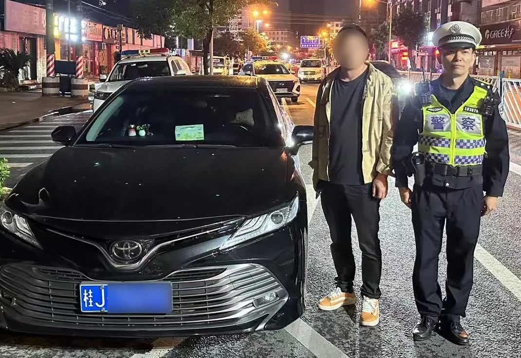 11月20日凌晨,南海交警大队在和顺官和路开展夜查行动期间,一辆桂J号牌小车在临近执勤点时突然靠边停车,司机刘某迅速下车并跑进路边的商场。民警见状,迅速上前并成功将刘某查获。