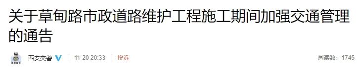 除此之外,日前,西安市公安局交通管理局发布《关于草甸路市政道路维护工程施工期间加强交通管理的通告》,具体如下↓↓↓