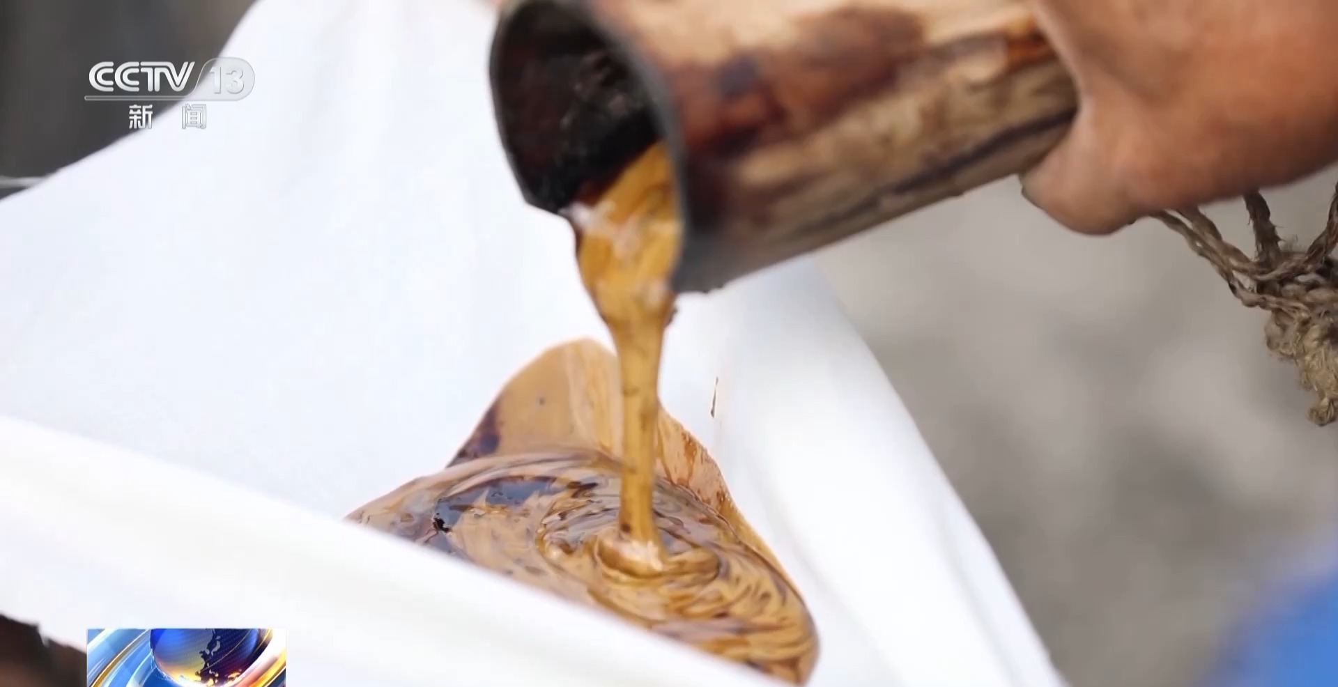 收割来的生漆,经过滤渣、熬制、冷却与桐油混合之后才能使用。