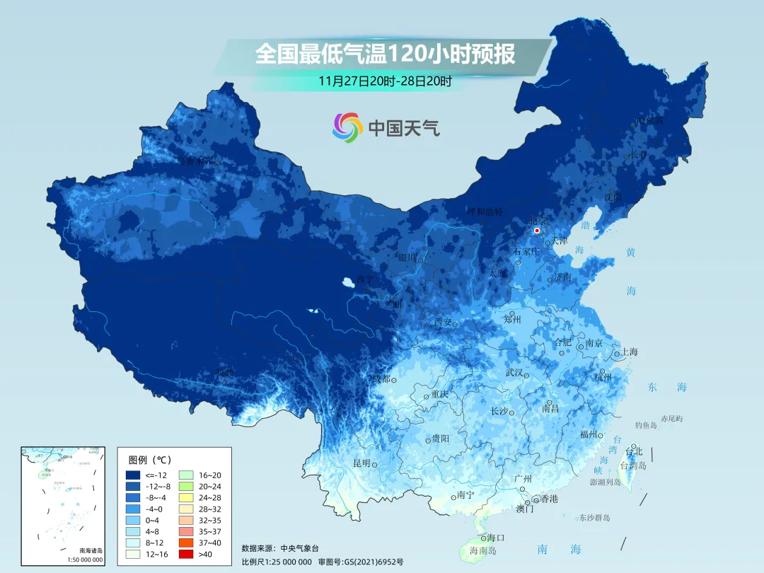 这次寒潮还会深入南下,合肥、南京、上海等地最高气温都会是今年下半年来首次跌到个位数 ,迎来冬日体验。28日前后广州、南宁最低气温将逼近10℃,福州可能跌破10℃。