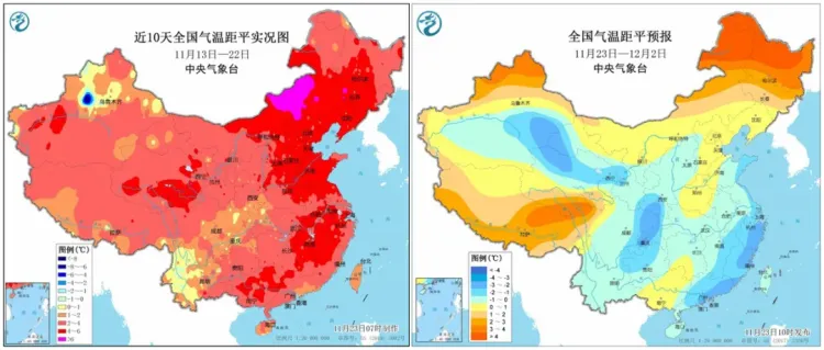 随着寒潮推进,西北地区率先降温,气温开始转为偏低,25日至26日,华北、黄淮、江南、江淮、江汉等地气温陆续转为偏低,并将集中创立秋后新低 。