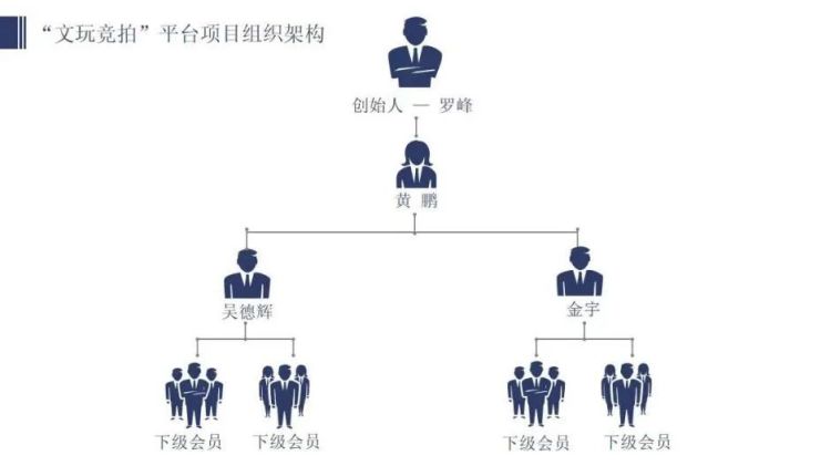 警方调查发现,该“文玩竞拍”平台项目参与人(即会员),通过介绍他人加入平台项目,便可获得佣金,这是该平台能够快速膨胀的重要原因。该“文玩竞拍”平台根据会员的投资金额以及发展下线数量将会员分为普通会员、阁主、出局阁主等,会员可获得其发展会员参与“竞拍”交易金额的0.5%,如果某会员发展的会员较多,便可获得其所有直接发展会员“竞拍”交易金额折算的佣金。如果业绩突出,会员可晋升为1级阁主,团队总业绩达标后还可以继续晋升,级别不同所获得的奖励金额不同。