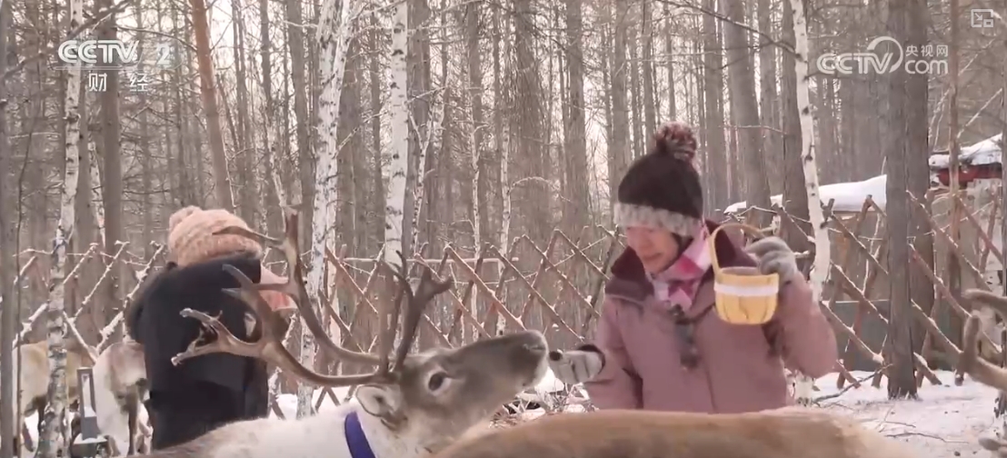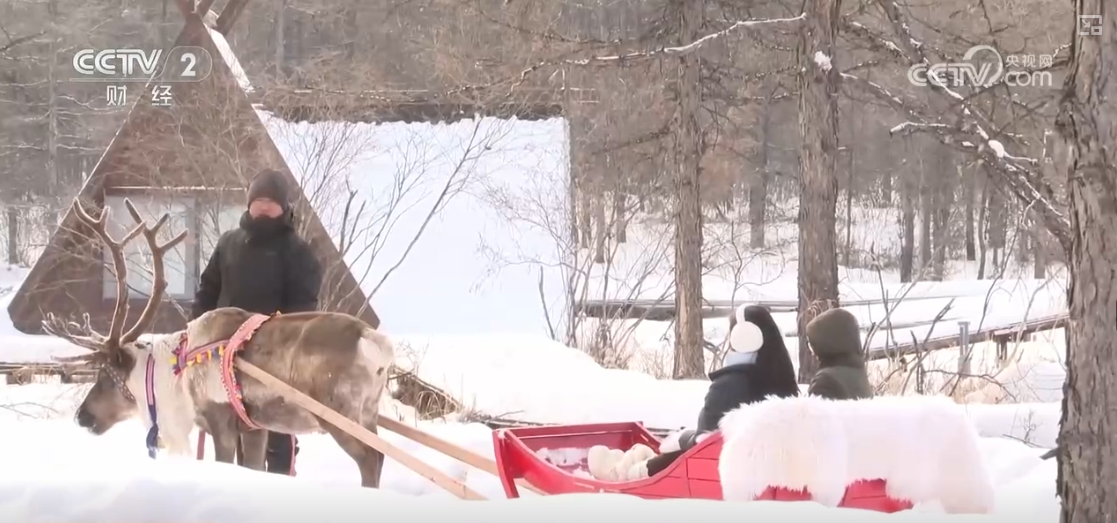 在根河市一景区内,来自广东的50多名游客在此赏雪景、打雪仗。吸引外地游客的不仅是根河市的极寒气候和冰雪资源,还有这里的驯鹿。驯鹿投喂、驯鹿拉雪橇等活动,让游客与驯鹿近距离接触。