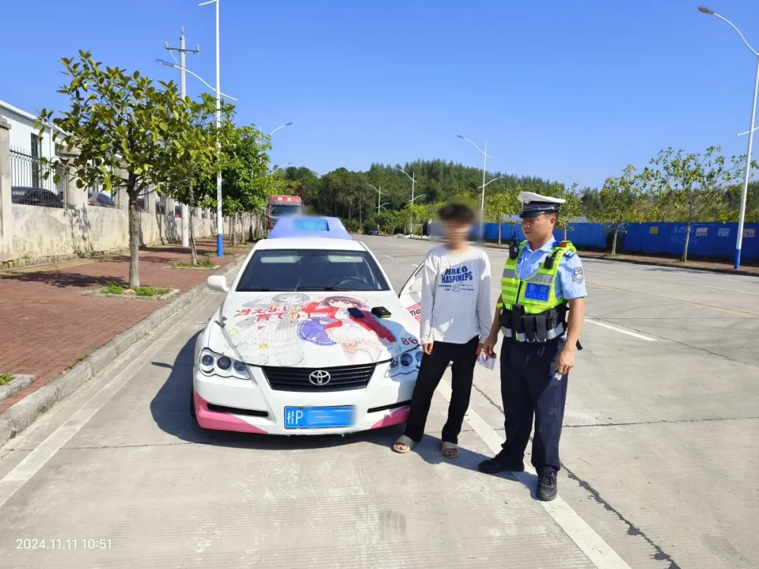 11月7日,执勤民警在防东路农机校周边路段将嫌疑车辆及驾驶人成功拦截。检查中,驾驶人黄某神色慌张,且无法出示驾驶证。