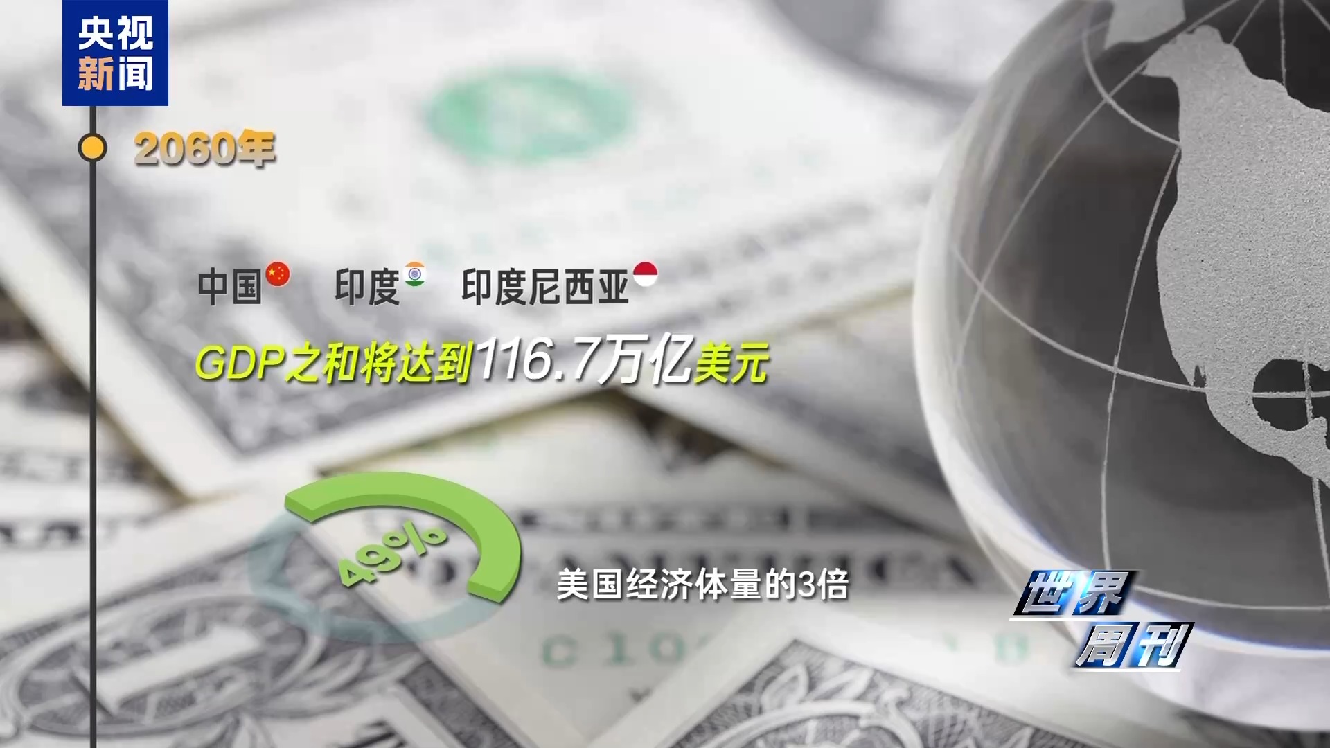 据经合组织预测,到2060年,中国、印度和印度尼西亚的GDP之和将达到116.7万亿美元,占全球GDP总量的49%,是美国经济体量的3倍。