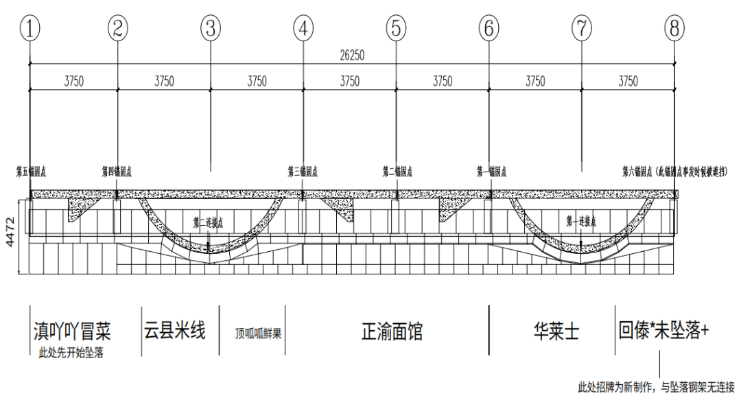 其中2023年3月,滇吖吖鲜牛肉冒菜店西侧相邻的水城羊肉米线店(附11号)装修时,拆除原有的金属钢架全部重新制作门头招牌;2023年5月,华莱士餐饮店东侧相邻的慧毅餐厅(附6号)装修时,见金属钢架锈蚀严重,感觉不安全就拆除原有的金属钢架全部重新制作门头招牌。