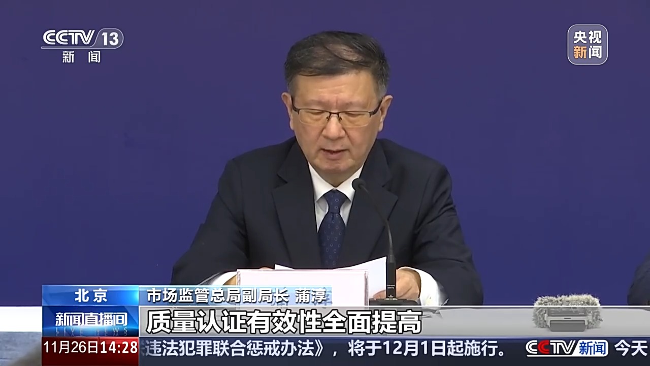 市场监管总局副局长 蒲淳:方案设定了具体目标,到2026年底,质量认证有效性全面提高,质量认证行业公信力评价体系逐步完善,质量认证行业公信力大幅提升。