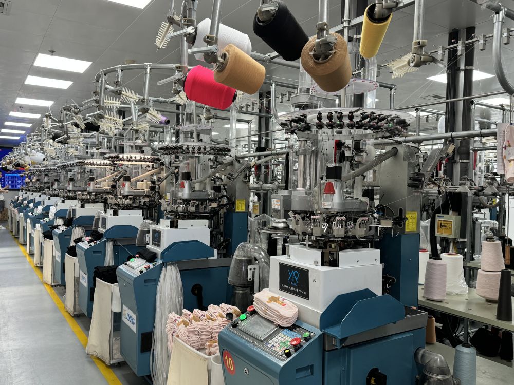 浙江亿衡针纺科技有限公司同样尽享科技升级之利。厂长王一平说:“一体袜机将袜子织造、缝头、翻袜三道工序融为一体,下机袜品可直接定型包装。这样生产的袜子品质上乘,人工成本大幅削减。”有了数字化设备加持,这家企业的外贸订单周期缩短了十天左右。