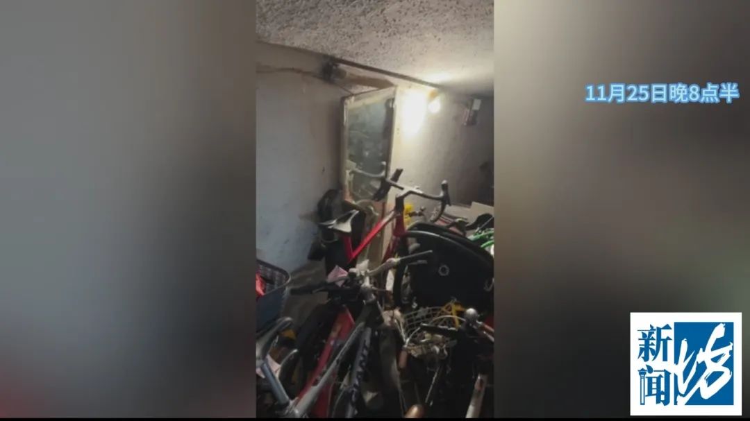 蔡女士:我们在杂物间里面,把这个车子取了出来,我们的车已经被杂物碰擦,造成了一定漆面受损、刮花的情况,这也是让我们经济受损。我们现在去问了下做自行车维修的人员,大概给出的报价是,两辆车的维修费用在1万元左右。