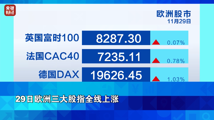 29日欧洲三大股指全线上涨