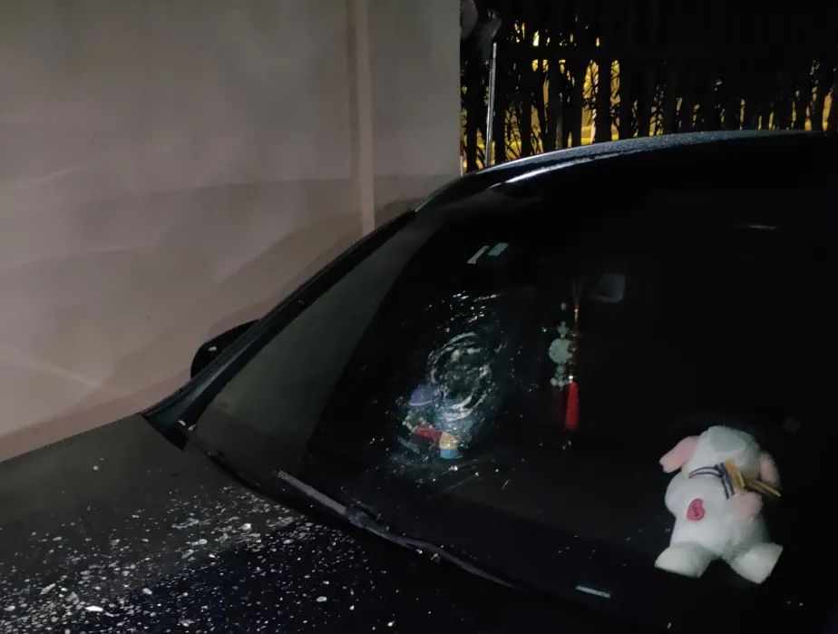 近日,凤溪派出所接到市民姜先生报警称,自己的车辆停在小区停车位里,前挡风玻璃被莫名其妙砸坏。