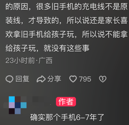 小鱼儿:我一直和家里孩子讲,充电别玩手机。