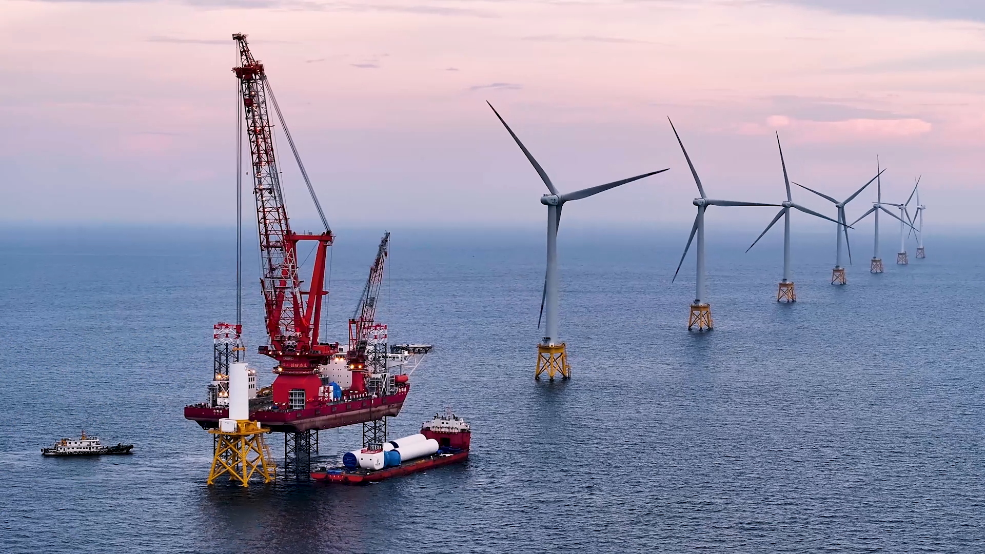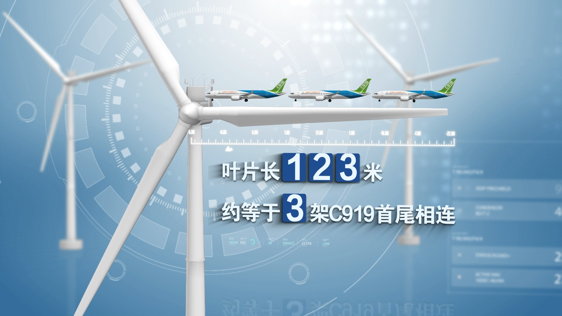 16兆瓦海上风电机组,身高相当于3枚长征五号运载火箭,其叶轮扫风面积为5万平方米,相当于7个足球场;叶片长123米,约等于3架C919首尾相连的长度。在满发状态下,这样一台海上风电机组能够满足3.6万户家庭一年的用电量。