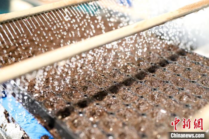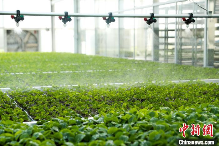 12月2日,浙江杭州谢径安·传化农创村的育种车间,喷灌系统在对育种苗圃浇水。中新社记者 张祥毅 摄