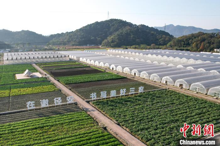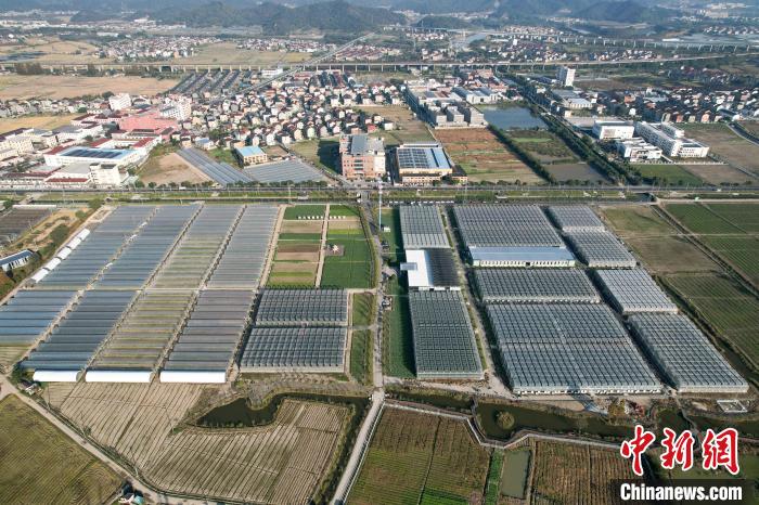 12月2日,航拍谢径安·传化农创村的区域特色产业基地。地处浙江省杭州市萧山区浦阳镇的谢径安·传化农创村,由谢家、径游、安山三村组成,常住人口1.2万人,近年来,浙江民营企业传化集团在该村发展科技助农特色产业,推动乡村发展致富。(无人机照片)中新社记者 张祥毅 摄