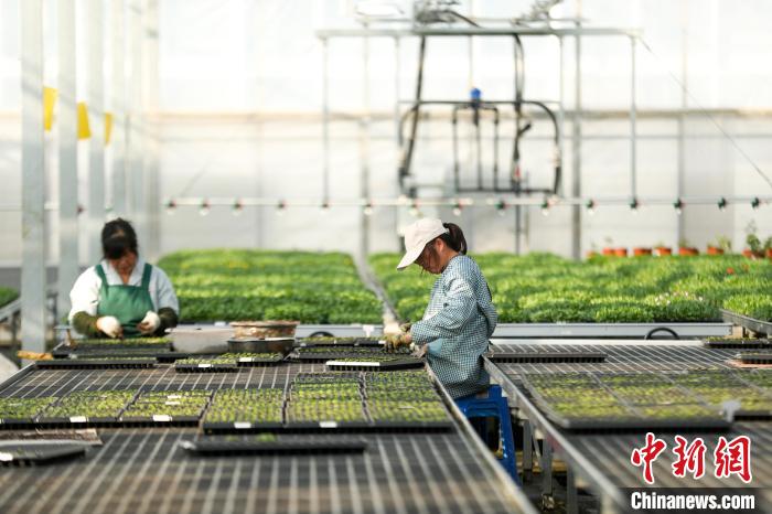 12月2日,浙江杭州谢径安·传化农创村,农民在温室大棚内整理育苗。中新社记者 张祥毅 摄