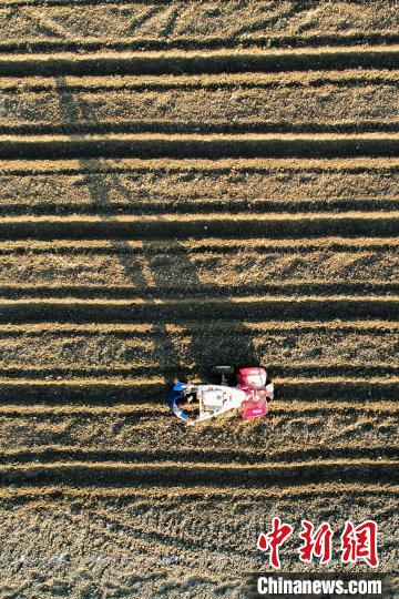 12月2日,浙江杭州谢径安·传化农创村,农民在田间耕作。(无人机照片)中新社记者 张祥毅 摄