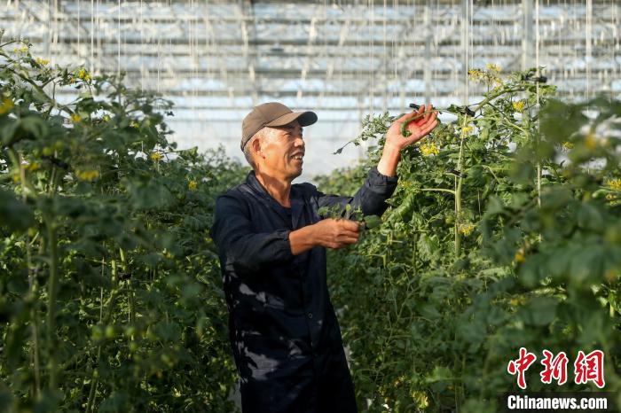 12月2日,浙江杭州谢径安·传化农创村,农民在温室大棚内整理植株。中新社记者 张祥毅 摄