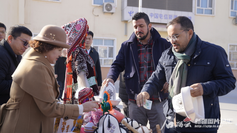 考察团一行走访中国新疆民族乐器村、英吉沙县“土陶村”“小刀村”、英吉沙县阿迪力达瓦孜艺术传承中心等地,观看乐器制作、达瓦孜特色表演等,与工匠、手艺人深入交流;在喀什疆果果农业科技有限公司,了解新产品、新技术发展以及企业带动群众就业等情况;在阿克陶县恰尔隆镇昆仑佳苑社区,走访部分居民群众,观看柯尔克孜族英雄史诗《玛纳斯》说唱展示。