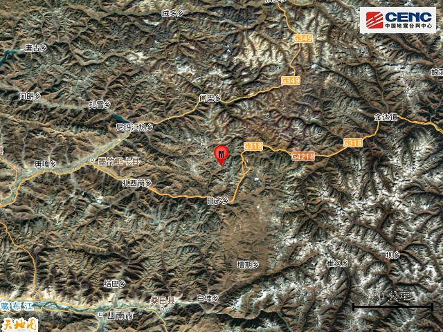 震中地形: 震中5公里范围内平均海拔约5260米。