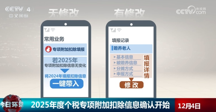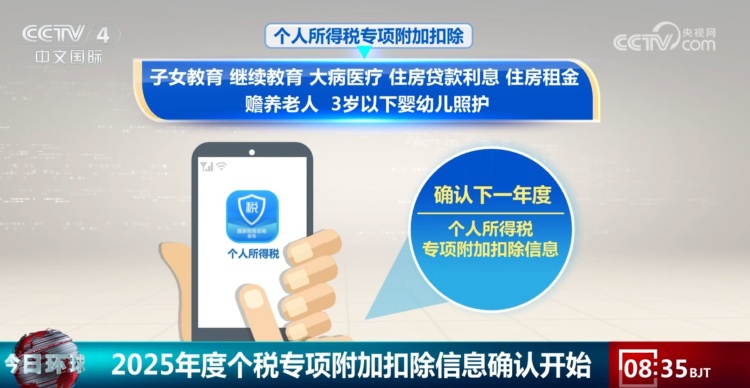 央视网消息: 2025年度的个人所得税专项附加扣除信息确认于12月1日开始,将于12月31日截止。个人所得税专项附加扣除有哪些种类?如何进行确认操作?一起来了解。