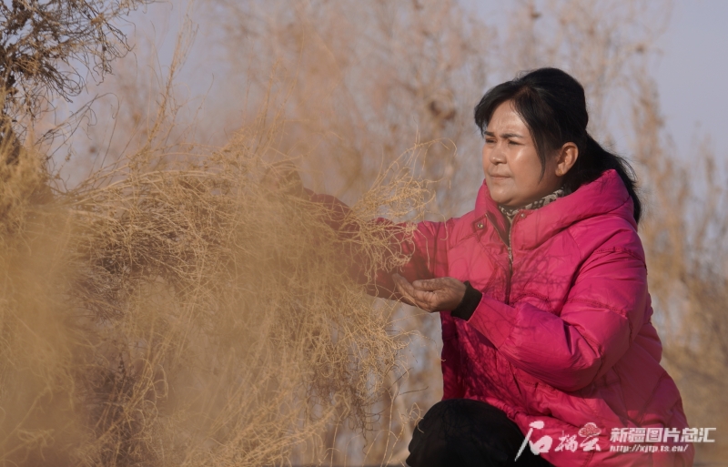 11月29日,在且末县河东治沙基地,帕提古丽·亚森在收集梭梭种子。苏鑫 摄