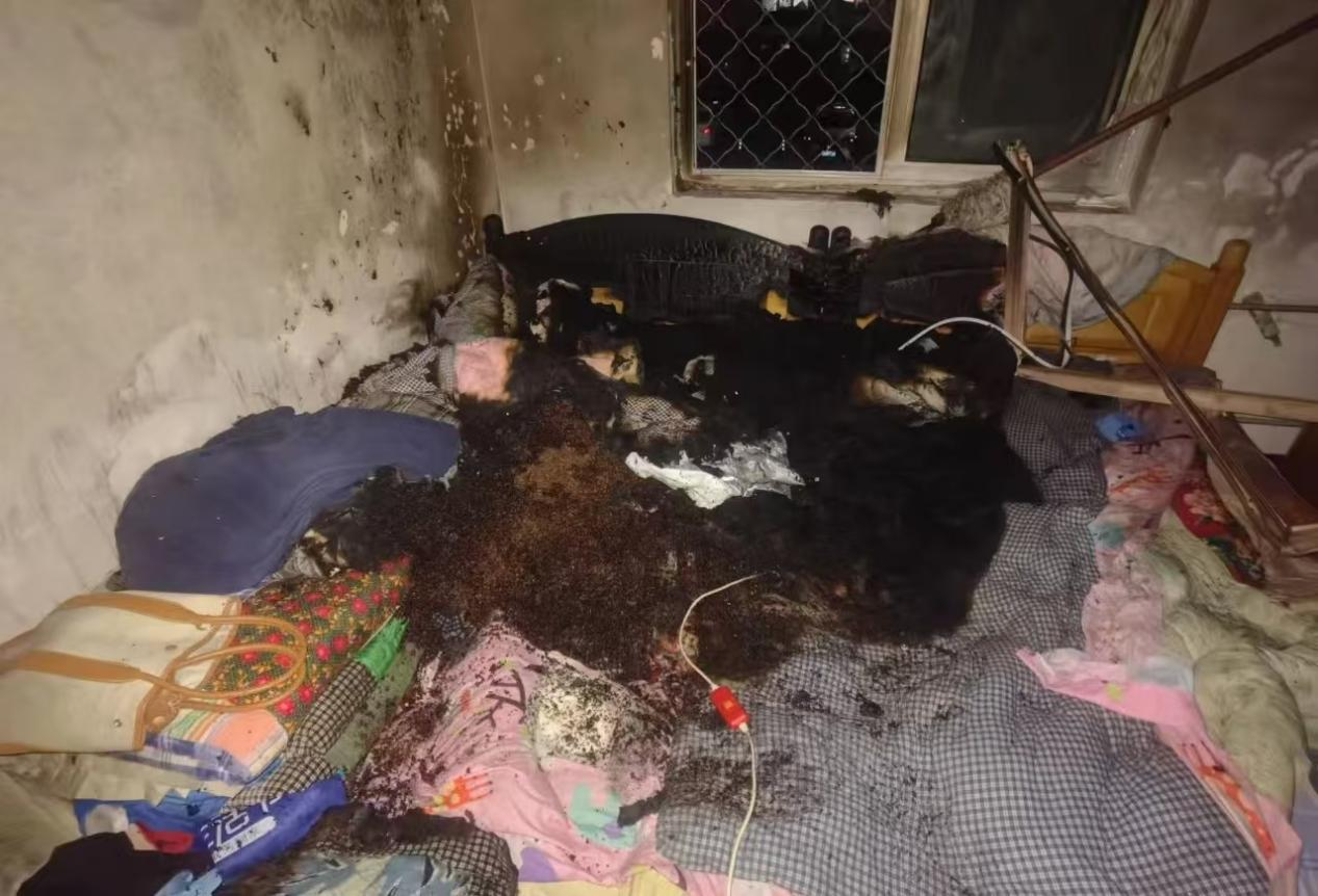 庞威表示:“消防人员在现场发现了电热毯的残留物,以及被火烧毁的被褥,插线板仍连接着电热毯的插头,且开关处于开启状态。经调查走访,该住户于10月7日晚,在东南侧卧室床上使用了电热毯,但第二天早起上班时,忘记关闭电热毯的电源开关,从而埋下了火灾隐患。卧室内的电热毯持续加热,导致被褥逐渐过热并引发火灾。”
