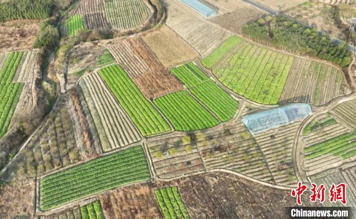 航拍歙县富堨镇青山村萝卜种植区域。潘腾 摄