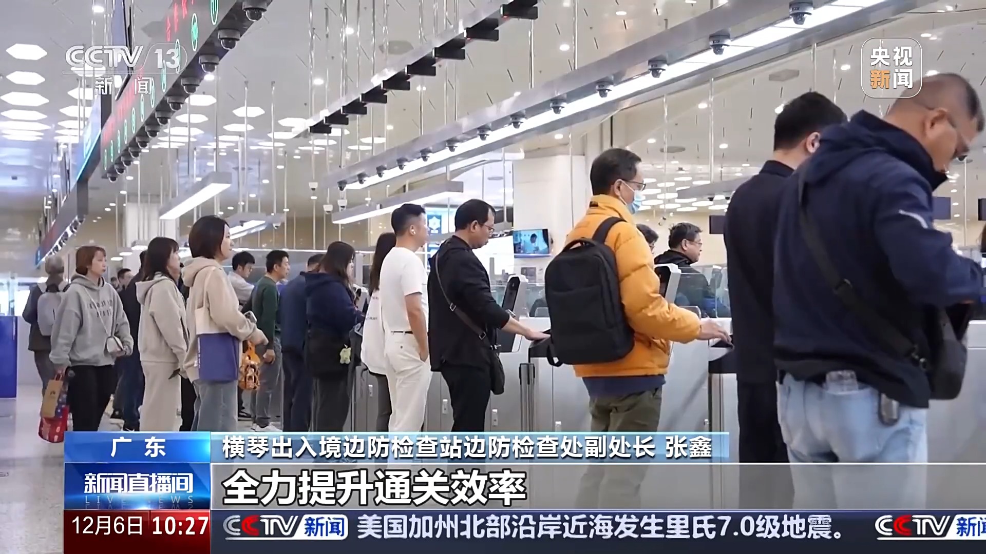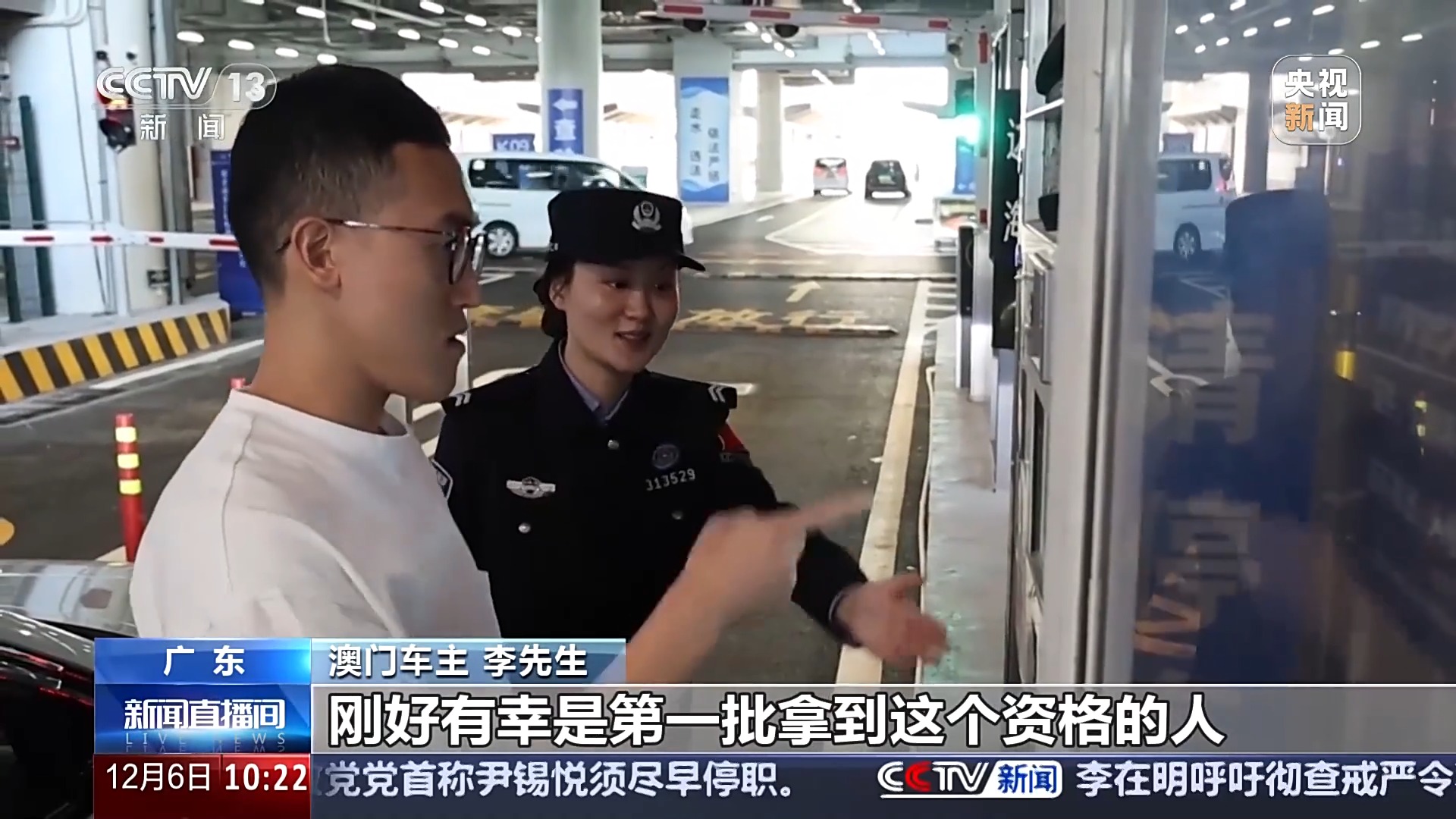 横琴出入境边防检查站边防检查处副处长 张鑫:今年以来,横琴口岸出入境客流和车流分别突破2000万人次和200万辆次,均创历史新高。同时,横琴赴澳旅游“一签多行”便利政策也将于明年1月1日起正式实施,届时,赴澳门旅游游客有可能大幅增加。横琴边检站将积极推动增建查验通道、优化勤务模式,全力提升通关效率,助力琴澳加速融合。