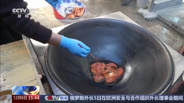 随着大雪节气到来,在四川成都的不少店铺,商家们已经批量制作各类口味的香肠和腊肉,有麻辣、甜口、五香、藤椒、蒜香等等,并在现场增加了试吃环节,吸引了不少顾客。