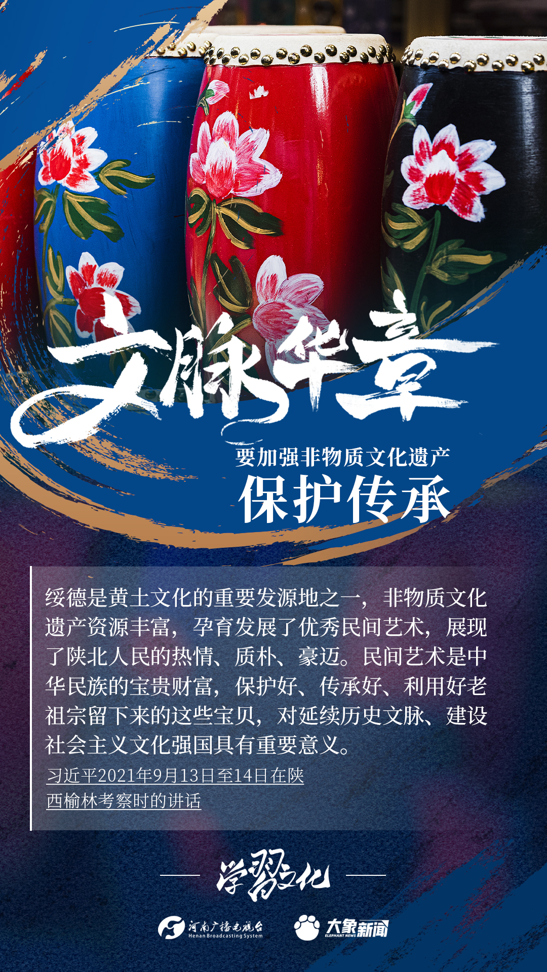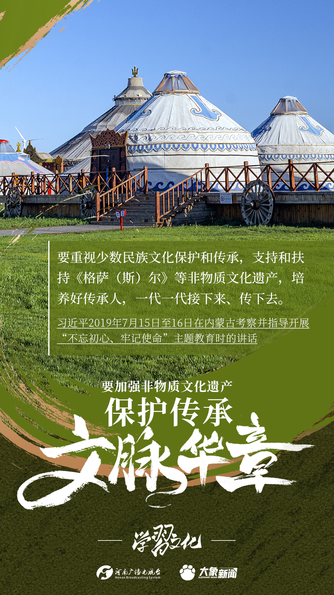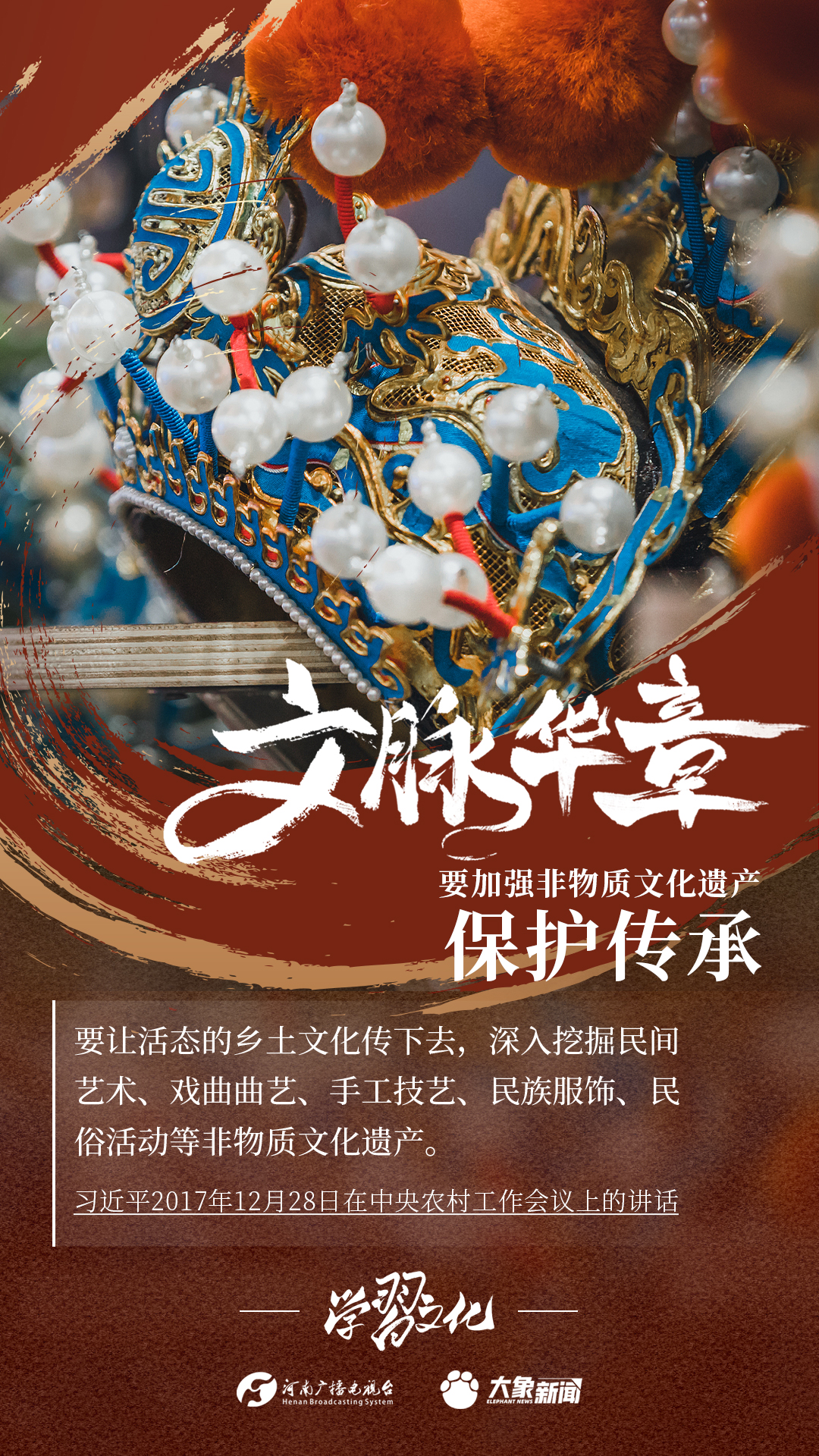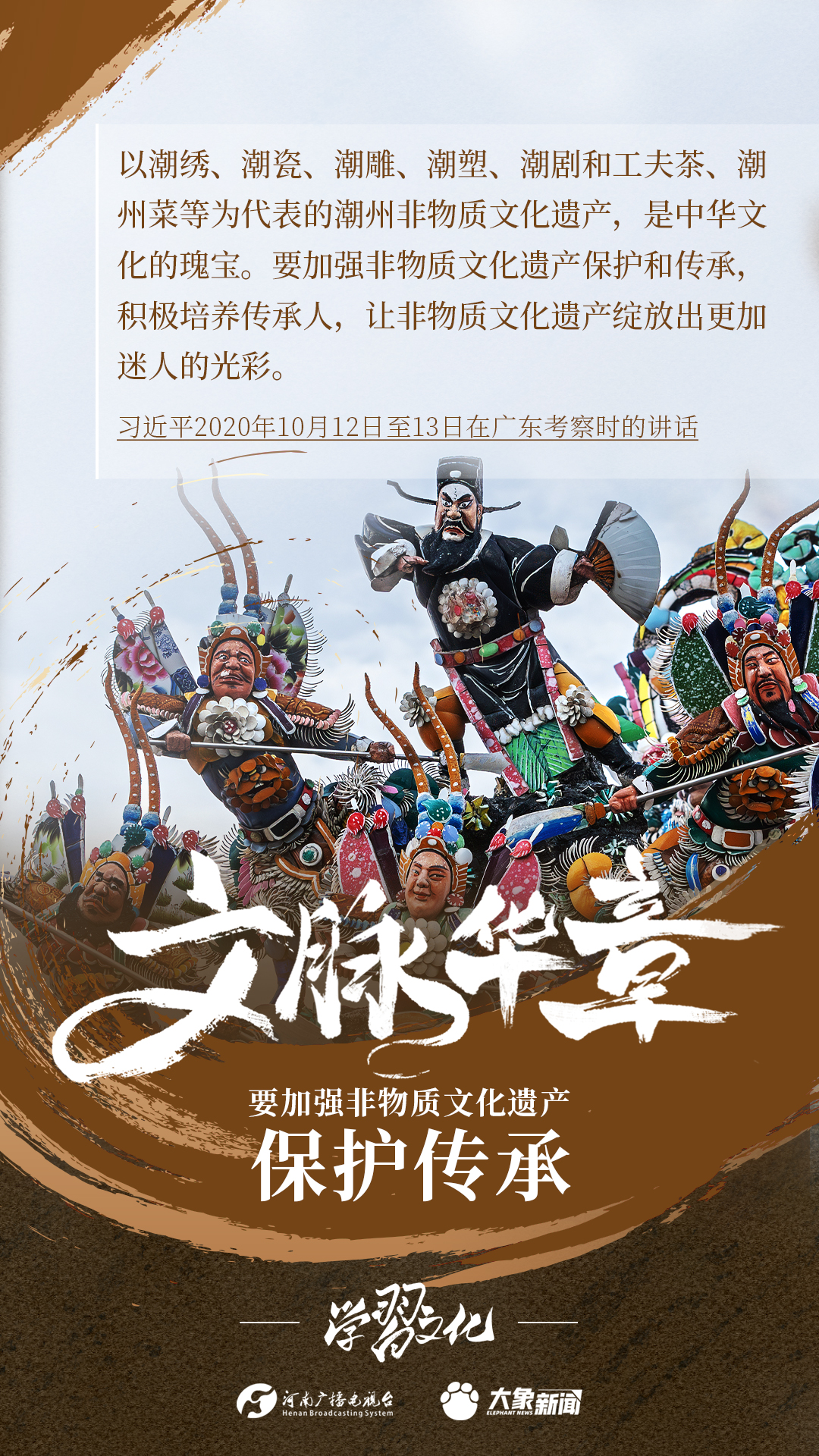 非物质文化遗产是中华优秀传统文化的重要组成部分,是中华文明绵延传承的生动见证,是我国各族人民宝贵的精神财富。习近平总书记十分关心非物质文化遗产的保护传承,多次强调“要扎实做好非物质文化遗产的系统性保护”“培养好传承人”等。大象新闻为您梳理,邀您一起学习、领悟、践行。