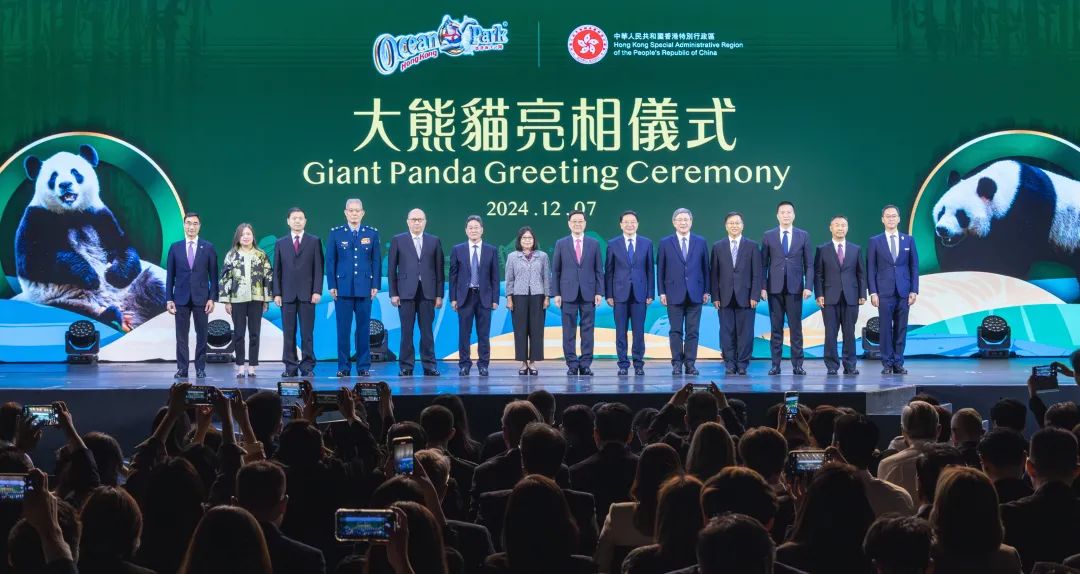 12月7日,香港特区政府在海洋公园举行中央政府赠港大熊猫亮相仪式。香港特区行政长官李家超,中央港澳办、国务院港澳办分管日常工作的副主任周霁,中央政府驻港联络办主任郑雁雄,外交部驻港公署特派员崔建春,国家林业和草原局副局长李云卿等出席。