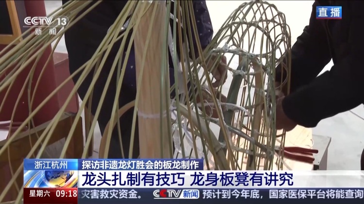 总台记者 夏周:现在我在河上镇溪头村的傅氏宗祠,这里就是河上板龙的生产车间,非遗技艺制作人正在纯手工制作当中。而且今年的制作时间从11月初就开始了,相较往年提前了一个半月。