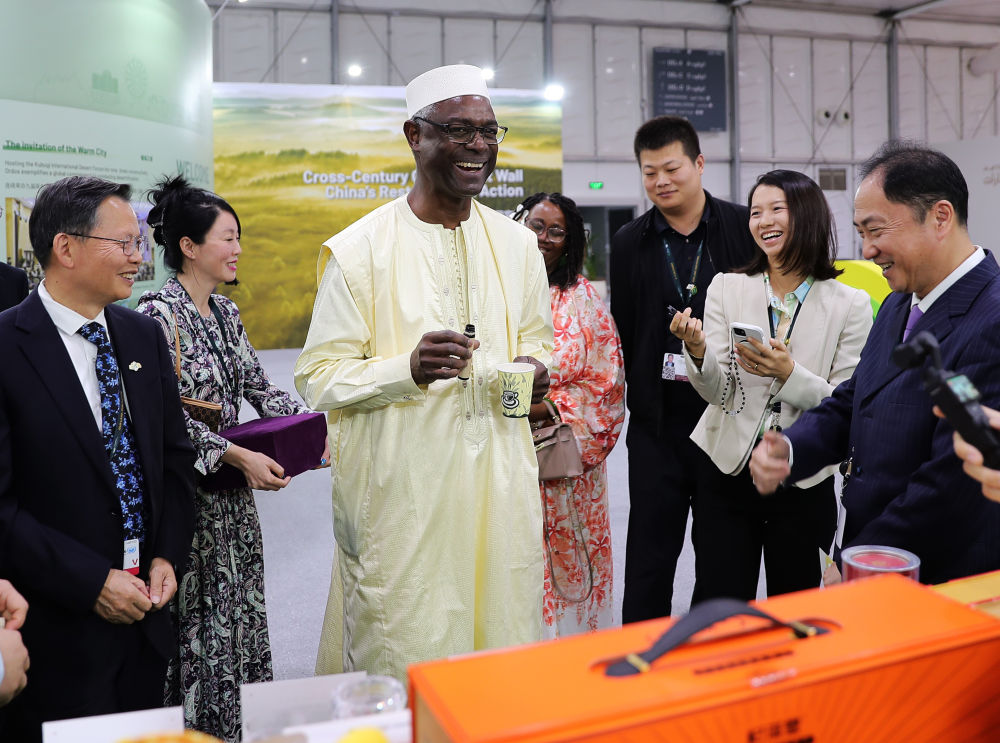 COP16期间蒂奥行程繁忙,但他依然仔细观展,从“刷状网绳式草方格沙障”技术、高效光伏设备,到植树机器人、卫星遥感监测系统,再到智慧沙产业的可持续发展故事,深入了解荒漠化治理中国方案的细节。