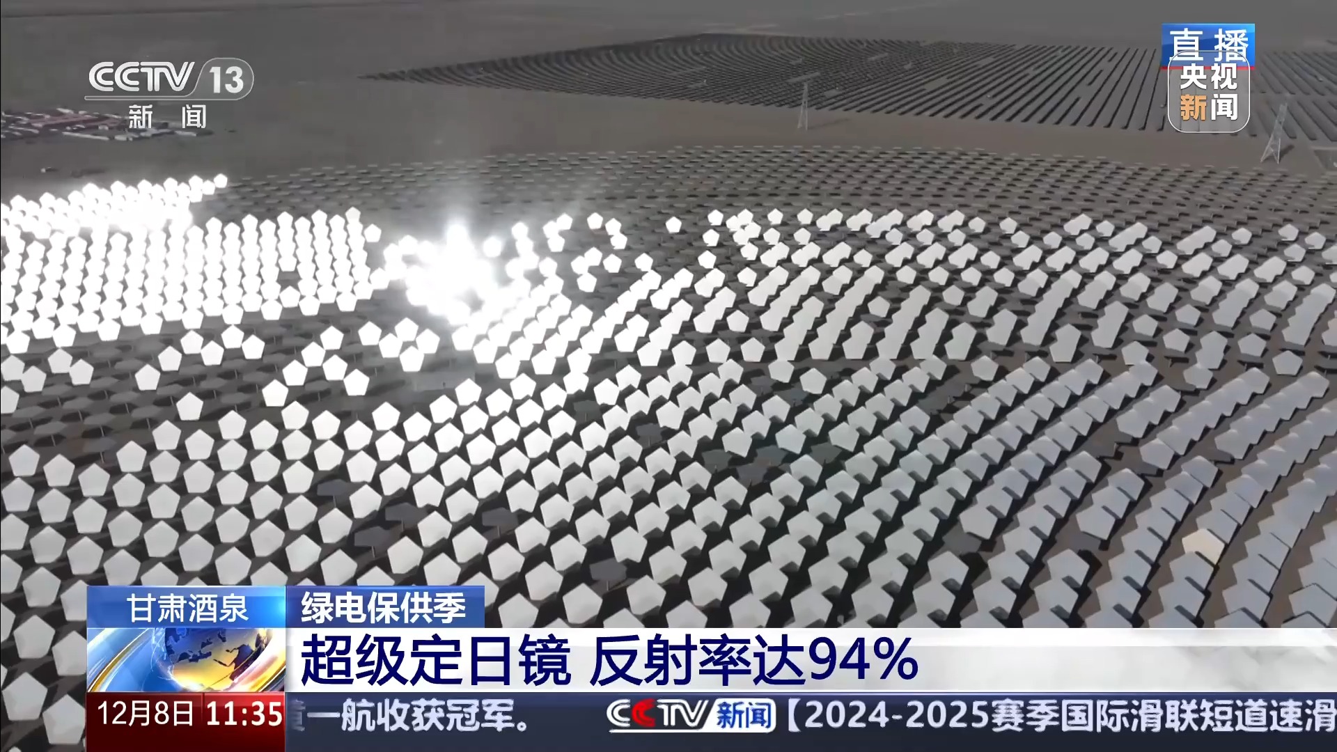 甘肃省最西端的阿克塞县的戈壁滩上,海拔近三千米,气温零下15℃。在这里有一大片镜子花园。这些大镜子有一个专业名字叫定日镜,它们就像开在戈壁滩上的“向日葵”,可以自由转动,追逐太阳光。“向日葵”一共有11960个,总占地面积达到了58万平方米,相当于81个标准足球场。